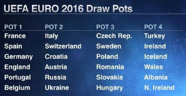 Queste le quattro urne del sorteggio per Euro 2016: