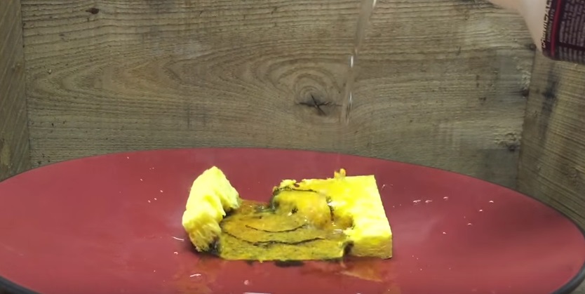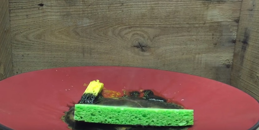 Il video è stato visto più di 110mila volte in pochi giorni. La reazione chimica che si scatena provoca un rapidissimo scioglimento delle spugnette anche quando l’acido viene solo spruzzato.