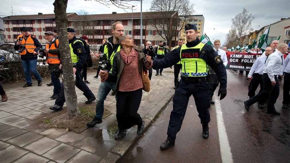 Domenica primo maggio, Festa dei lavoratori, la donna si trovava in piazza Borlange, a nord-ovest di Stoccolma, in Svezia, quando ha visto il corteo di 300 neonazisti svedesi del movimento ‘Nordiska motståndsrörelsen’ (Movimento di resistenza nordica) che sfilavano.