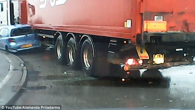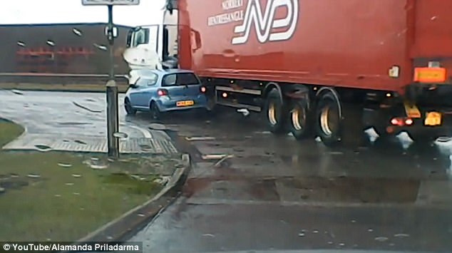 L’incidente è accaduto ad uno svincolo nei pressi del Magna Park a Leicester in Inghilterra. Dopo la diffusione del video si è scatenato il dibattito.A prima vista, infatti, il proprietario dell’auto sembrerebbe avere ragione. Per molti però ha colpa: l’auto si sarebbe intrufolata accanto al mezzo pesante che si allarga sulla destra proprio per poter effettuare al meglio la curva. Il video è stato ripreso dalla dashcam di un’auto che segue ed è stato pubblicato sul Daily Mail e YouTube.