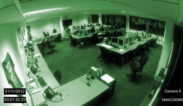 MANCHESTER – Un fantasma si aggira in ufficio. Rumori sinistri tra i locali deserti di un ufficio di notte. Prima il suono poi le immagini di porte che sbattono e si chiudono all’improvviso. Una misteriosa presenza che corre lungo un corridoio, sedie che si muovono, cassetti che si aprono e fogli che volano in aria.