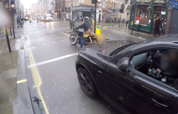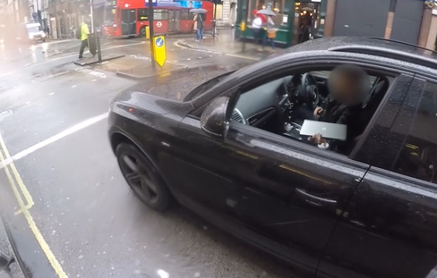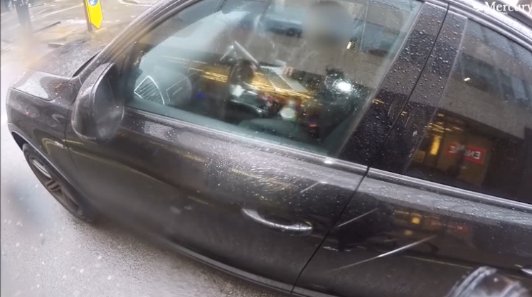La scena si svolge a Londra: la donna si trovava alla guida di un’Audi nera ferma al semaforo di Great Portland Street, quando il ciclista/vigilante l’ha affiancata. La donna al volante stava usando il suo computer portatile Macbook. Quando il ciclista le ha domandato cosa stesse facendo la donna è scattata immediatamente sull’attenti e si è difesa: “Il semaforo è rosso e la mia auto è ferma”. Poi, non appena è scattato il verde è scappata via a tutto gas e per poco non ha investito il centauro che era di fronte a lei.