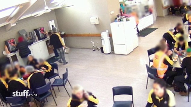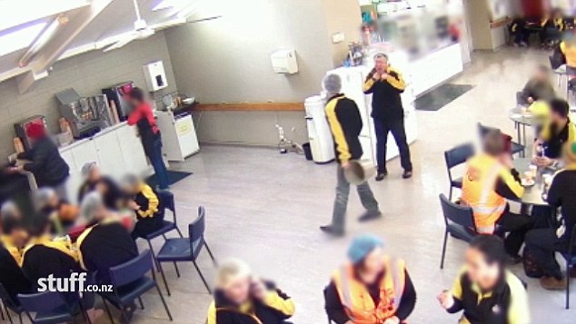 L’uomo, prima di raggiungere il collega si vede che riempie un secchio di acqua bollente che poi finisce sulla testa di Wu mentre quest’ultimo si sta gustando il suo pranzo. Wu salta in piedi e riporta scottature anche sul collo e sulla schiena. Show, prima di allontanarsi comincia ad inveire contro. Un altro collega seduto vicino prende il secchio e colpisce in testa Show che subito dopo torna tranquillamente al suo tavolo per riprendere a mangiare come se niente fosse.