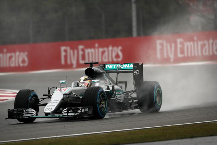 Mercedes driver Lewis Hamilton of Britain steers his car during the third practice session of the Chinese Formula One Grand Prix at the Shanghai International Circuit, in China, Saturday, April 16, 2016. (ANSA/AP Photo/Mark Schiefelbein)