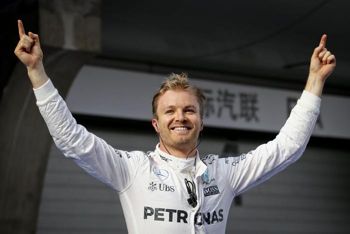 epa05263200 German Formula One driver Nico Rosberg of Mercedes AMG GP reacts after winning the Chinese Formula One Grand Prix at the Shanghai International circuit in Shanghai, China, 17 April 2016. EPA/DIEGO AZUBEL