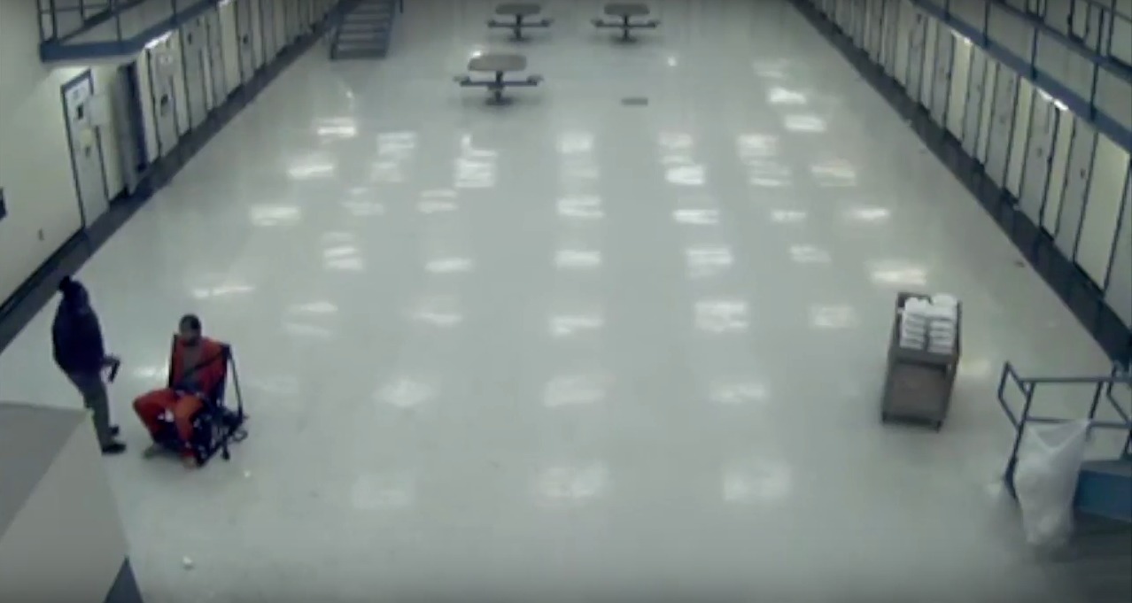Le immagini delle telecamere a circuito chiuso della camera di sicurezza mostrano la donna mentre spruzza per due volte dello spray al peperoncino in faccia al detenuto. L’uomo è stato aggredito per punizione e dopo aver ricevuto lo spray urticante addosso, è rimasto in balia di se stesso.