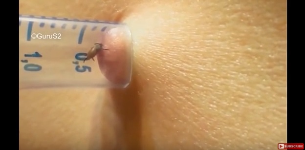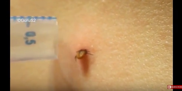 La bestia si attorciglia gradualmente tutta intorno fino a quando il corpo guizzante della zecca è finalmente estratto dal paziente non identificato. Le zecche possono portare una serie di malattie, tra cui la malattia di Lyme, che se non trattata, può causare problemi con il sistema nervoso.