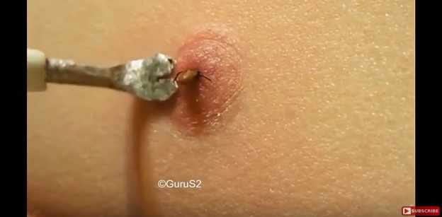 Questo processo continua per alcuni minuti, con lo strumento avvicinato alla pelle perché faccia leva al massimo. Dopo qualche minuto per vedere come è attaccato, il medico cambia il tubo di aspirazione con uno strumento di rimozione che è simile a pinzette.